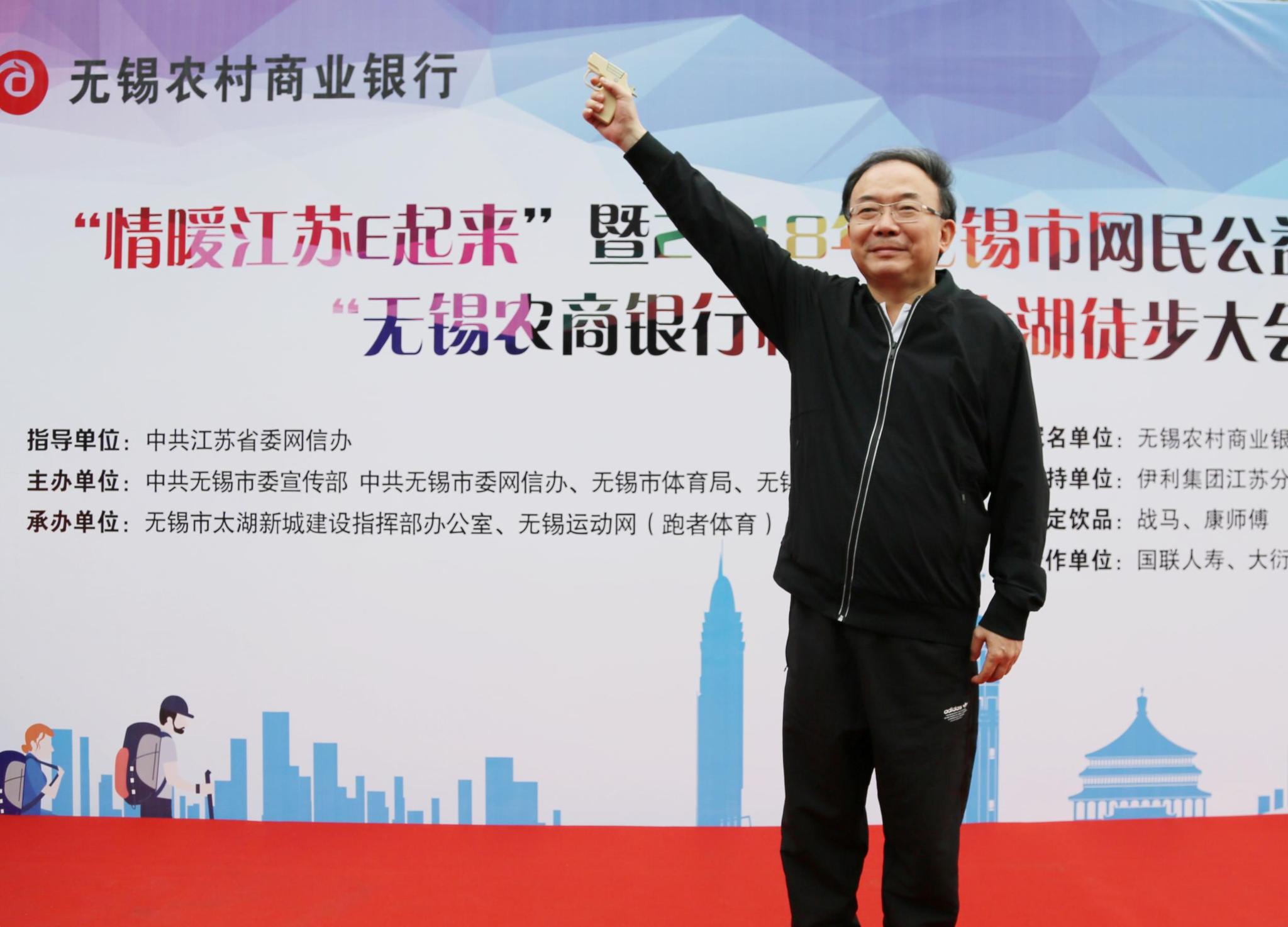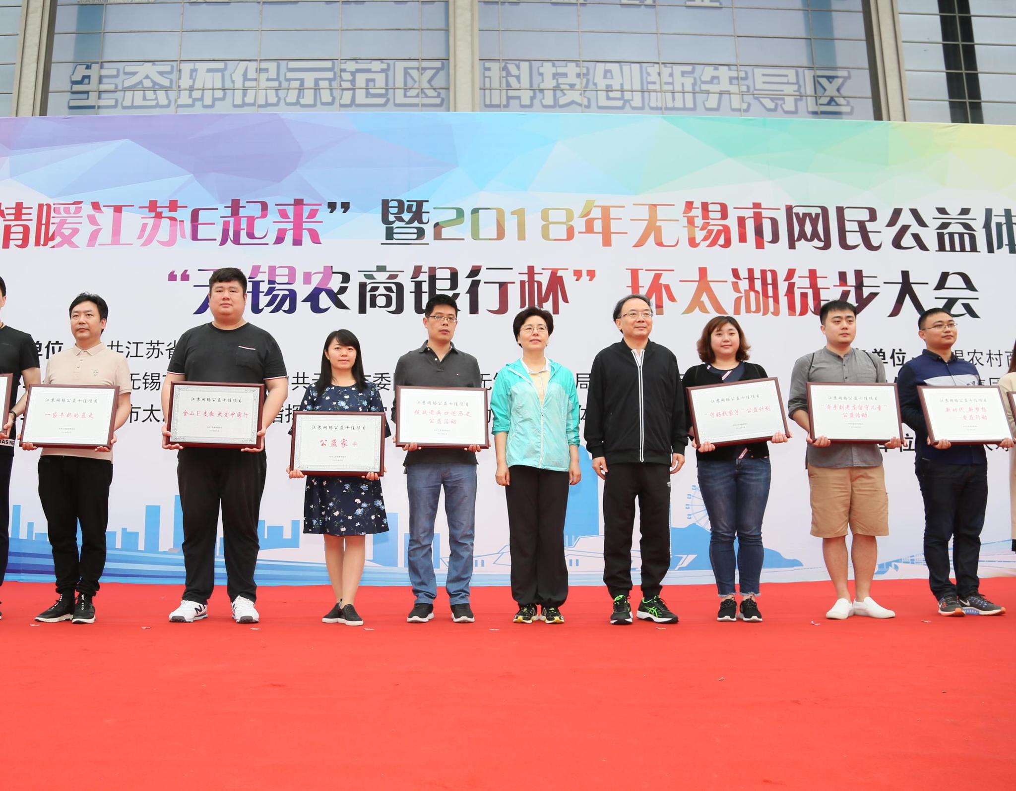 在“情暖江苏E起来”暨2018年“无锡农商银行杯”环太湖徒步大会上,江苏省委常委、无锡市委书记李小敏,江苏省委宣传部副部长、省委网信办主任徐缨为十佳网络公益项目、十佳网络公益达人颁发奖牌、证书。