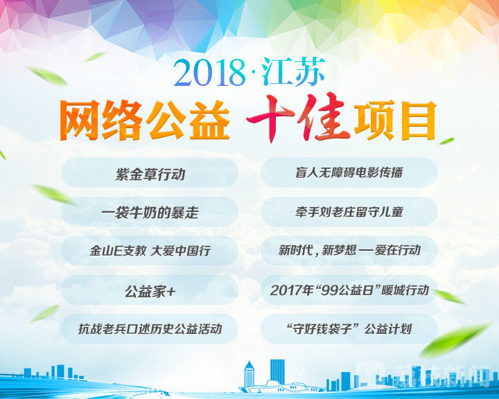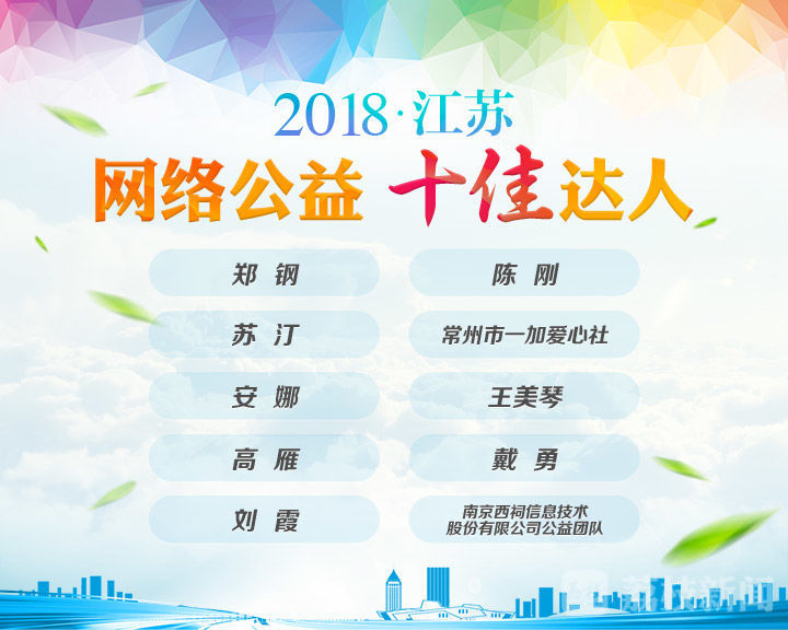 据了解,为生动展示江苏全省各地各有关单位在发展网络公益、传播公益正能量方面的成果,省委网信办组织开展了首届“双十佳”征集展示活动。经过专家评审等环节,评选出网络公益项目、公益达人各10个。